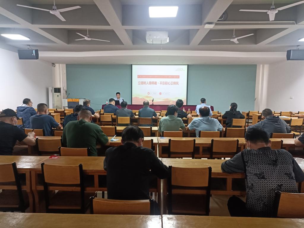 5月30日下午,创新创业学院(工程训练中心)院长褚怀保以《立德树人铸师魂·不忘初心正师风 》为题,在学院多媒体会议室为全体教职工讲授主题教育专题党课。