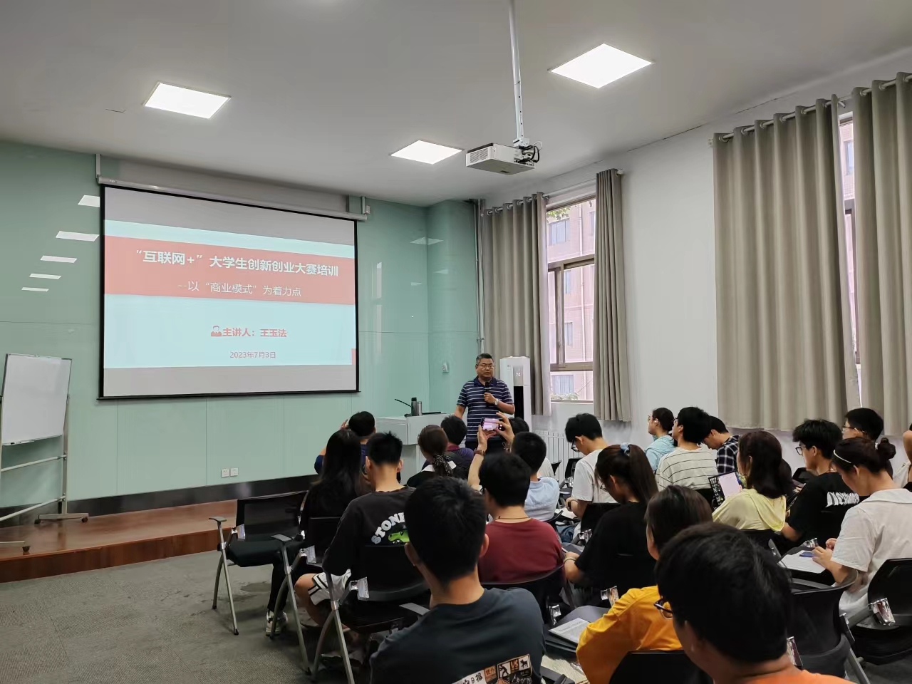 为进一步提升我校第九届中国国际“互联网+”大学生创新创业大赛参赛项目质量,7月3日上午,创新创业学院邀请财经学院会计系主任王玉法教授在双创中心208会议室作了“互联网+”大赛省赛备赛专题讲座。拟推第九届“互联网+”大赛省赛的98个高教主赛道项目和12个“红旅”赛道项目的指导老师和项目骨干成员160余人参加了本次讲座。讲座由创新创业学院副院长徐春浩主持。