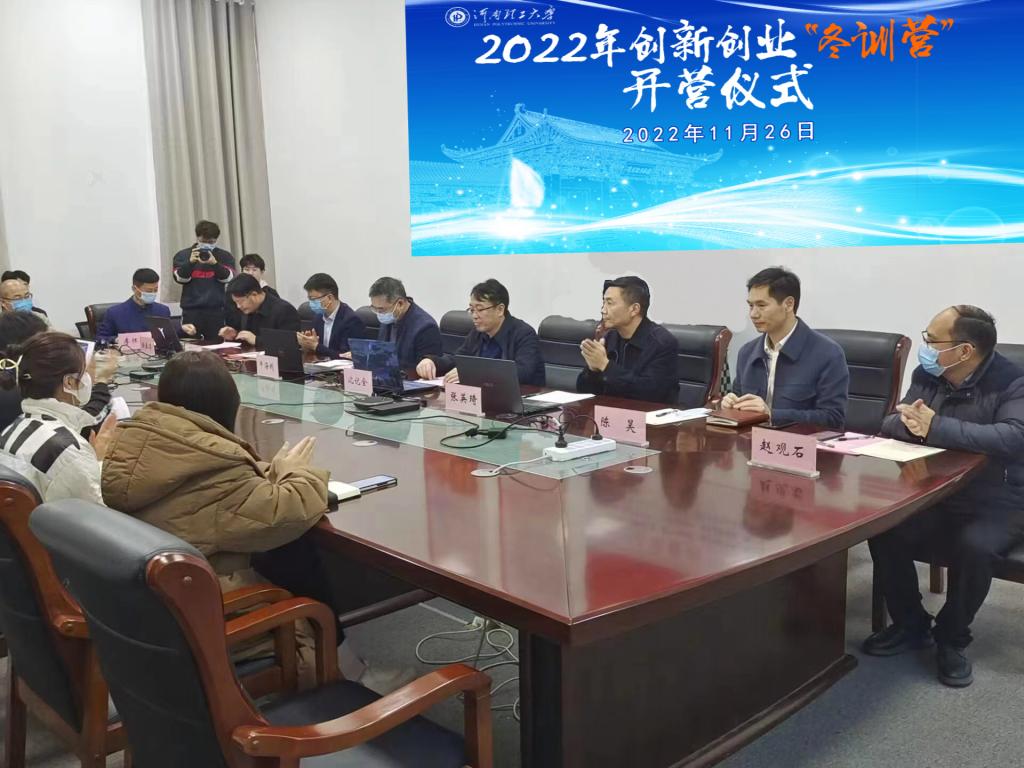 为进一步深化学校创新创业教育改革,提升教师创新创业教育水平,打造优秀双创项目“储备库”,11月26日,学校首届创新创业“冬训营”开营仪式以线下、线上相结合形式进行。副校长沈记全出席,创新创业学院院长张英琦、教务处处长牛海鹏、学生处处长陈昊、校团委书记支光辉等职能部门负责人,“互联网+”国赛获奖等优秀双创项目在校指导教师代表、学生代表线下参加了仪式。创新创业学院党委书记黄保金等学院负责人,全校创新创业指导教师、学生,创新创业类课程授课教师、各创新创业社团组织成员等线上参加了仪式。仪式由创新创业学院副院长徐春浩主持。
