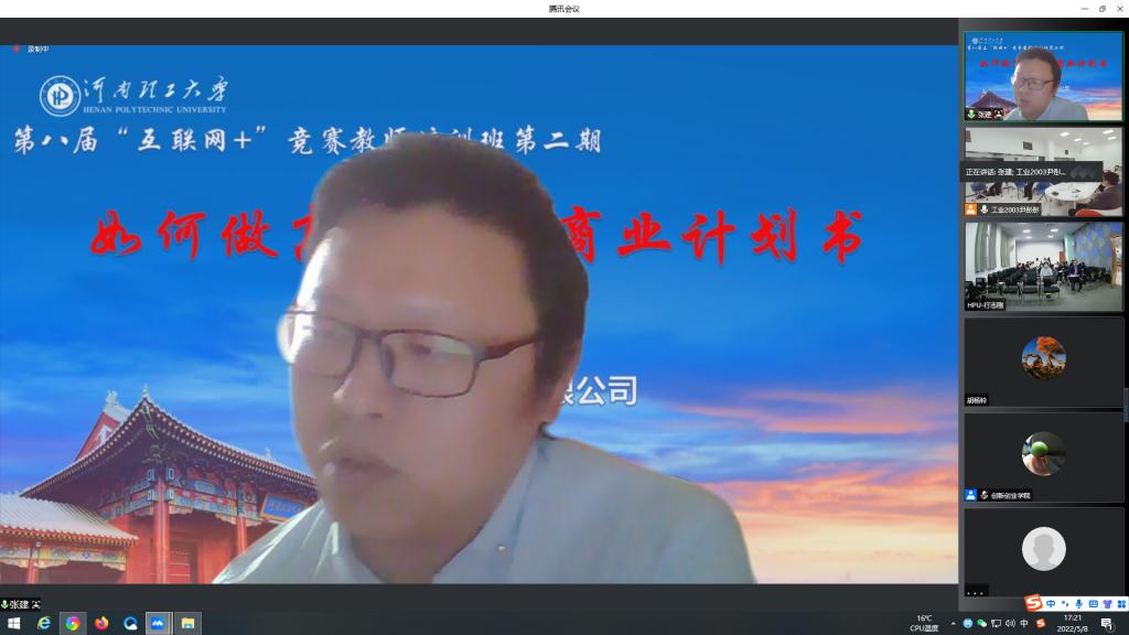 5月8日下午,由创新创业学院与教务处联合主办,创新创业学院承办的第八届“互联网+”大赛教师培训班(第二期)在创新创业学院207、208室举办。河南同方科技有限公司董事张键应邀作线上报告,报告主题为《如何做高质量的商业计划书》,来自全校10多个学院近100名师生参加了培训。培训由创新创业学院院长张英琦主持。