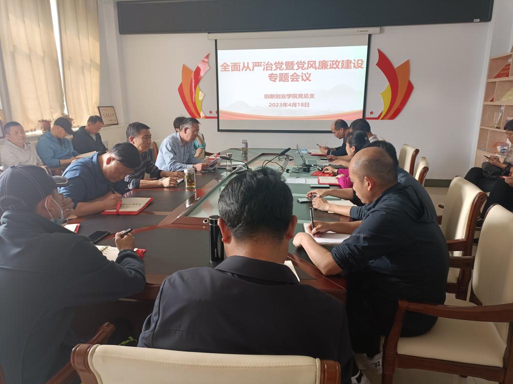 4月18日下午,创新创业学院(工程训练中心)在学院(中心)党员活动室召开2023年全面从严治党暨党风廉政建设专题会议,学院全体党员参加会议,会议由学院(中心)党总支书记黄保金主持。