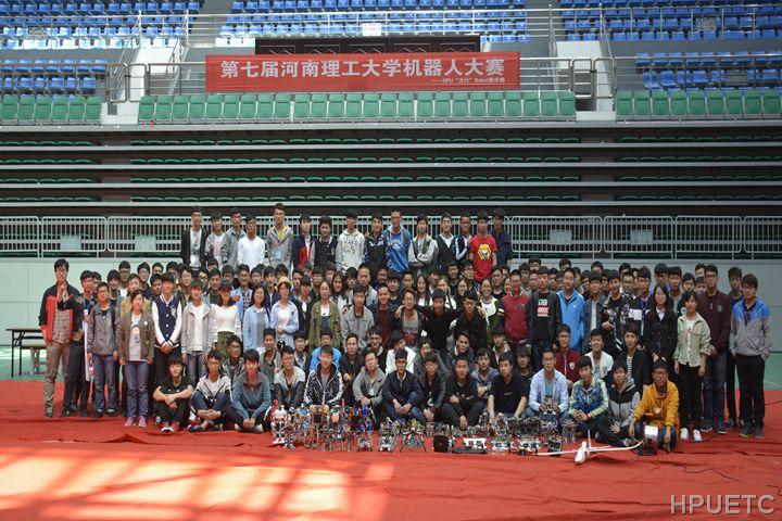 百花盛开齐斗艳,群英荟萃竞风流,4月14日,由工程训练中心、教务处、校团委、学生处联合主办,“力行”Robot俱乐部协办的第七届河南理工大学机器人大赛在校体育馆开幕。全校共有74支队伍参加武术擂台赛、双足竞步机器人、舞蹈机器人、体操机器人、搬运机器人、飞行器机器人等10个大项目,14个小项的比赛。经过激烈角逐,大赛共产生一等奖16项,二等奖28项。