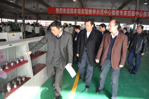 专家组首先听取了中心建设发展情况汇报,然后到中心进行实地考察,查阅了中心的实证材料,并组织召开了教师和学生座谈会。专家组按照国家级实验教学示范中心验收指标进行讨论和评议后,一致认为:工程训练中心在多年的实验室建设和改革实践中,遵循“主导、自主、开放、创新”的实验教学理念,构建了适合学生实践能力和创新能力培养的“分层次、多模块、系统化”的“4+6”工程训练教学体系。积极改革工程训练教学内容,开设了实践性工程训练公共选修课,很好的将理论与实践融合在工程综合训练教学中。创新管理体制,推行工程训练项目负责制,实施实训指导教师、指导人员量化考核办法,达到预期的建设目标。同时,专家希望中心能够进一步加大投入力度,增加“双师型”师资比例,加强先进制造技术建设,在全国实验教学领域充分发挥示范作用。