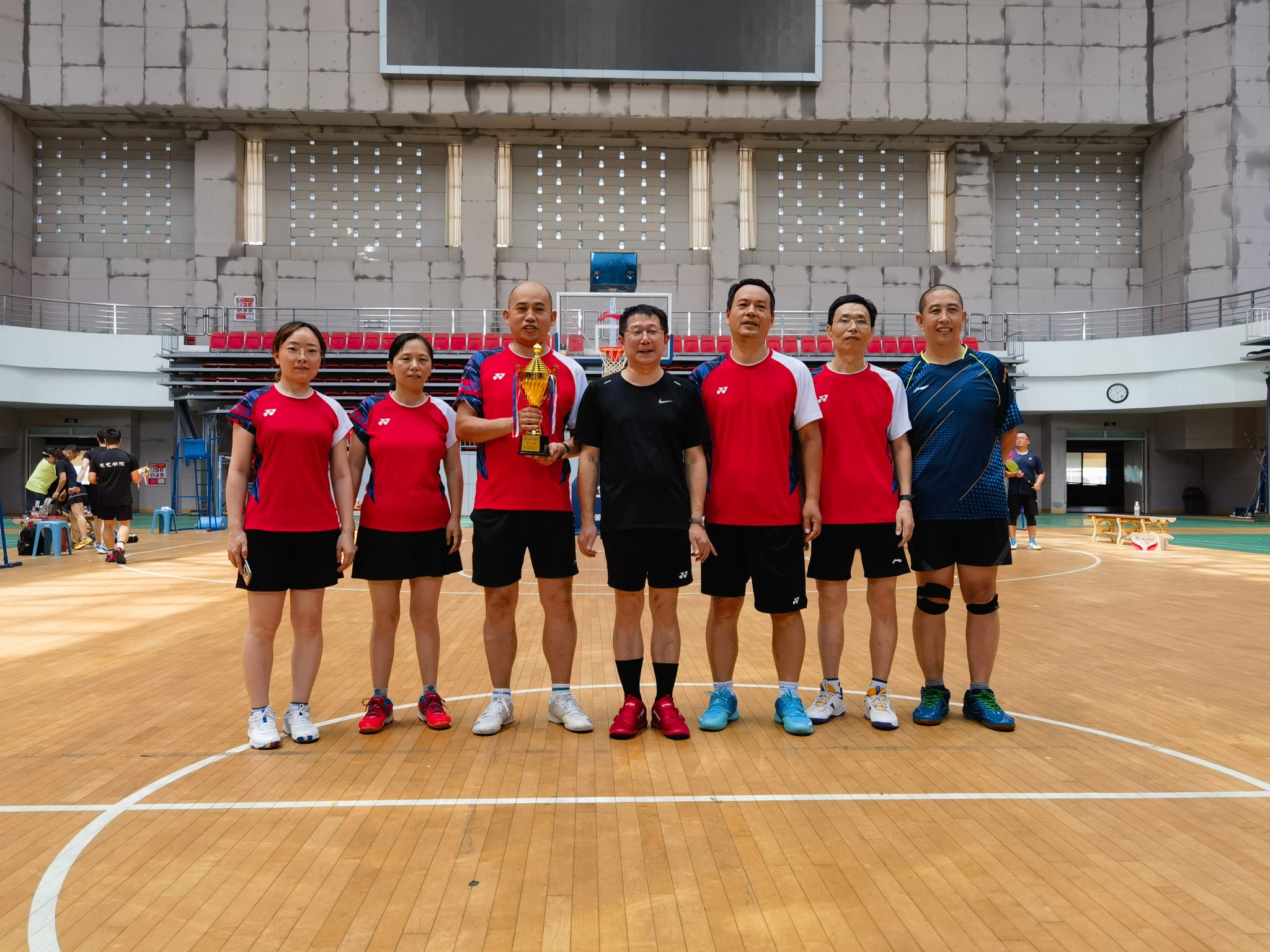 7月12日至13日,由校工会主办、校教职工羽毛球协会承办、物电学院工会及测绘学院工会协办的我校2024年体育节暨运动会教职工羽毛球赛于南校区东区体育馆举行。经过小组赛和淘汰赛激烈角逐,我院教师张自豪、胡焦、赵苗苗、王轶楠、孔方、吴亚辉、辛海军组建的参赛团队,最终卫冕冠军,这也是我院2020年以来获得的第五座冠军奖杯。赛后的颁奖仪式上,副校长边亚东亲自为我院代表队颁发冠军奖杯并合影留念。