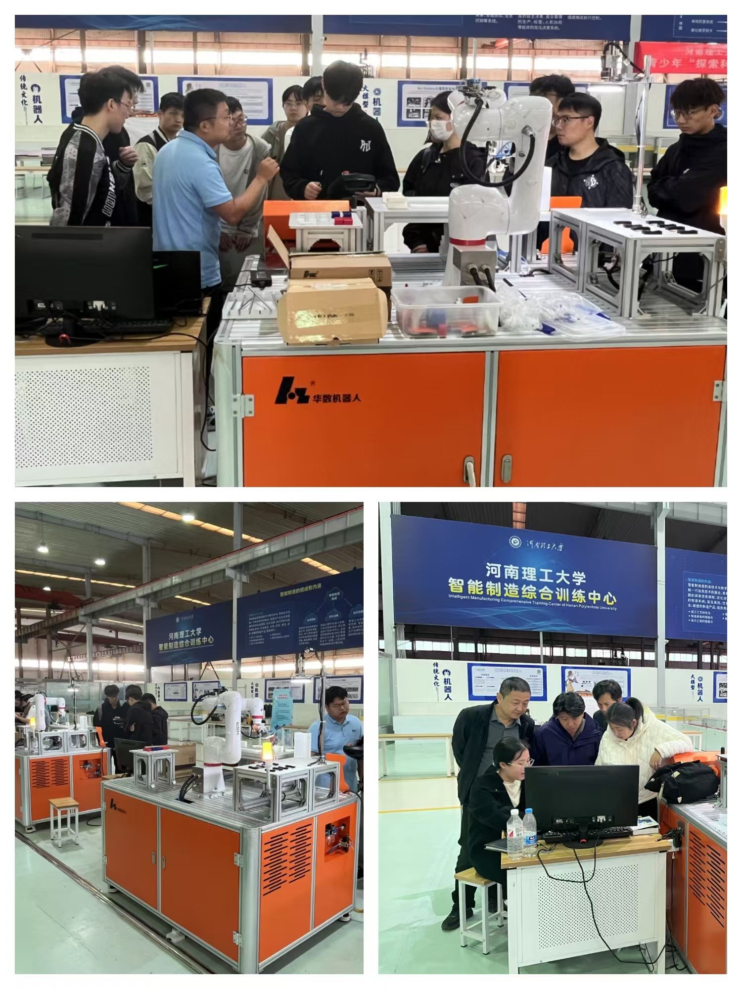 此次培训主要围绕河南理工大学智能制造综合训练平台(三期)设备,重点开展工业协作机器人创新应用、视觉系统调试与编程、PLC及HMI调试与编程等技术培训。经过此次培训,相关师生工业协作机器人编程和操作技能得到显著提升。