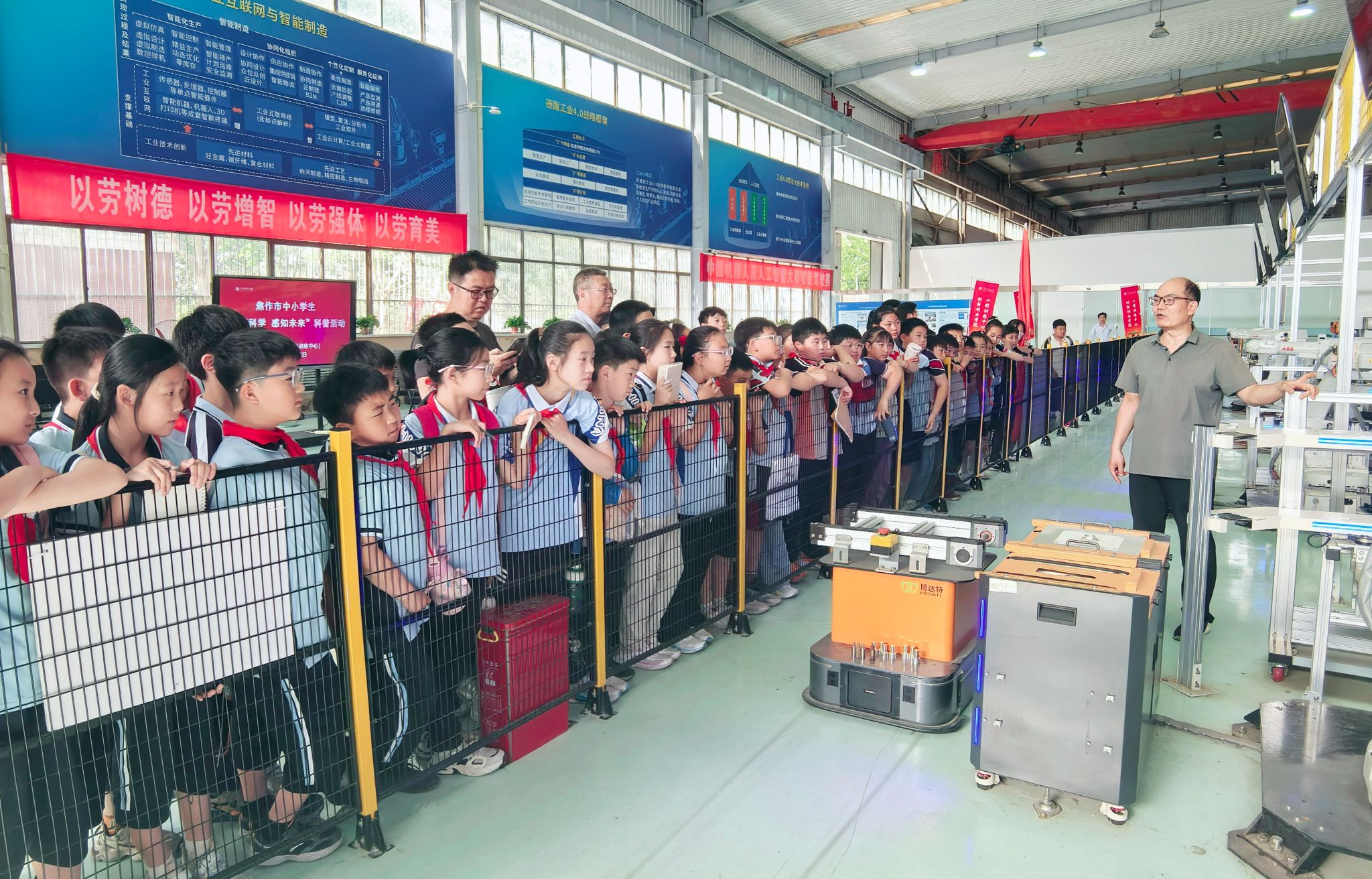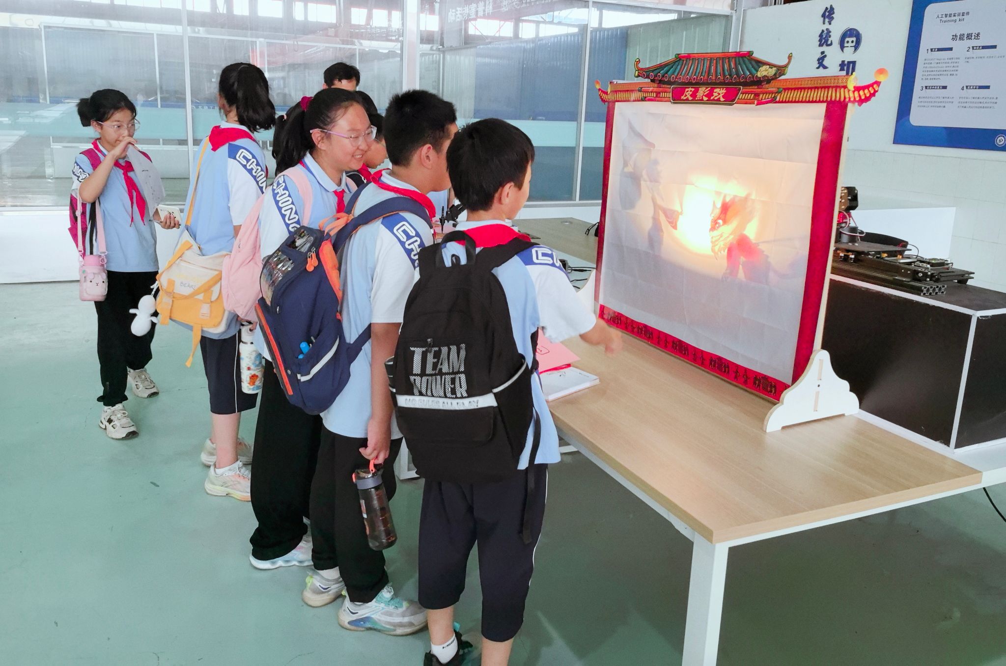 活动现场,学生首先集中参观智能制造生产线,亲眼见证工业产品自动加工流程,深刻感受现代制造业的高效及智能化。随后在智能机器展示区进行分组参观体验,无人机、智能协作机器人、书法机器人等精彩演示让孩子们惊叹不已。书法机器人与皮影戏机器人等巧妙融合传统文化与现代科技,让孩子们在领略文化魅力的同时,深切感受到科技对文化传承的创新推动。在无人机展示区,志愿者深入浅出地讲解了飞控原理、行业应用等知识,学生们争先恐后进行互动,现场气氛热烈。最后,在欢呼惊叹声中,无人机顺利完成自主避障、识别打击等飞行演示,展现出航空科技的独特魅力,将活动推向高潮。