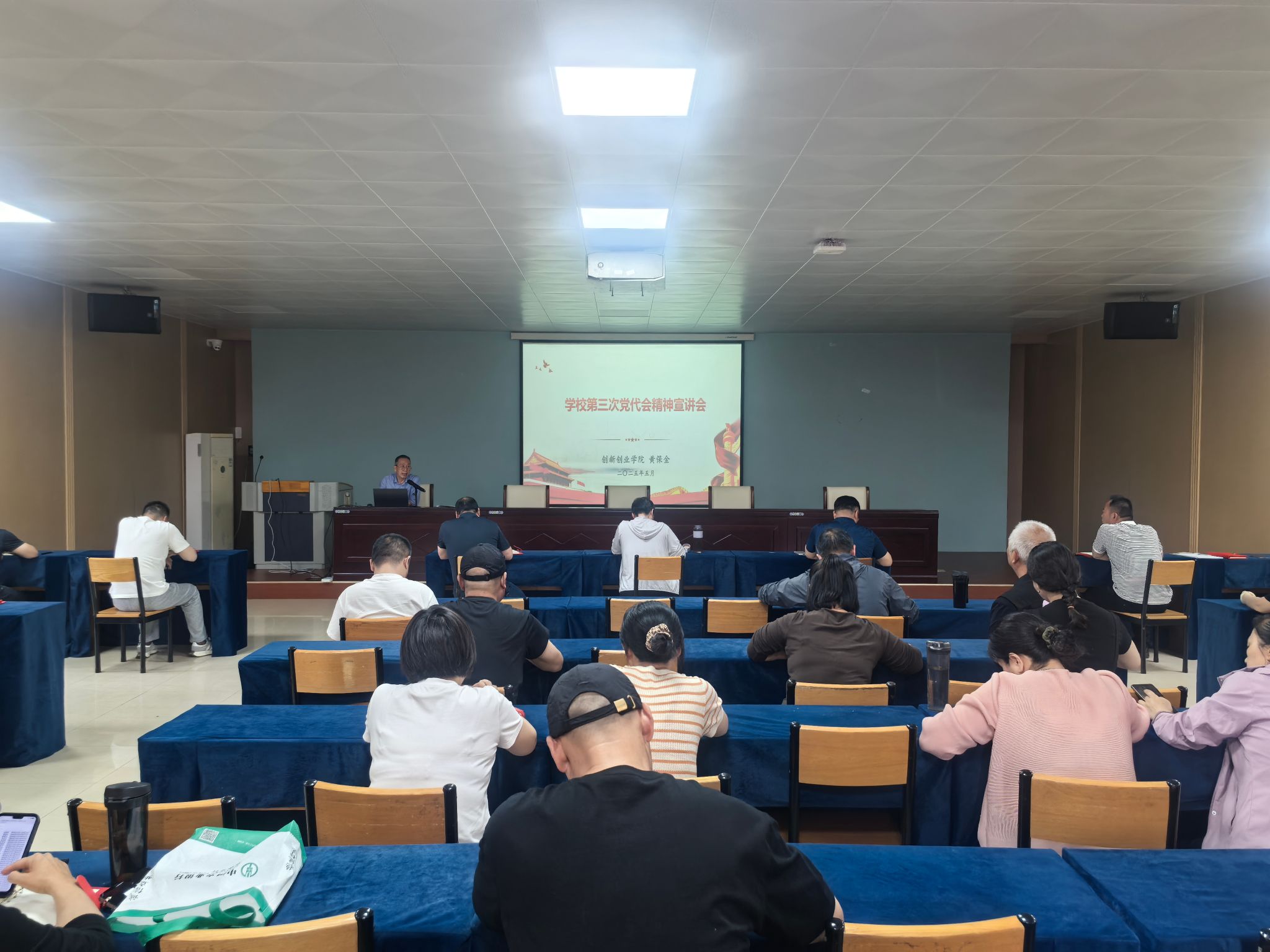 5月13日下午,创新创业学院(工程训练中心)召开学习宣传贯彻学校第三次党代会精神动员部署暨集中宣讲会。学院(中心)党总支书记黄保金主持会议并作集中宣讲,学院(中心)班子成员和全体教职工参加。