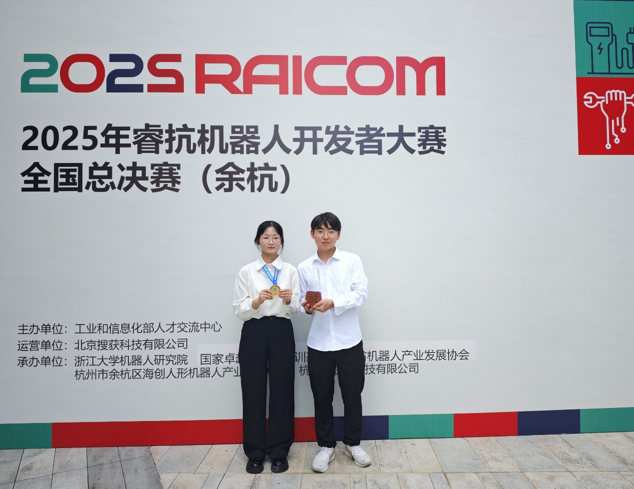 作为全国机器人开发领域的顶尖赛事,本次大赛汇聚了全国各高校精锐团队,参赛人数约20000人。为备战此次大赛,创新创业学院(工程训练中心)高度重视,积极联合电气学院组建参赛团队,由电气学院2023级轨道交通信号与控制专业学生赵冰雨担任队长,与靖瑞聪同学在徐春浩、张鹏展两位指导老师的悉心指导下,携带自主研发的软件平台出征赛场。比赛期间,赵冰雨充分发挥统筹协调能力,合理分配任务、及时调整策略,与靖瑞聪默契配合,凭借扎实的专业功底、精准的技术操控和高效的协作联动,展现了我校学子卓越的综合素养以及科技创新领域的过硬实力。