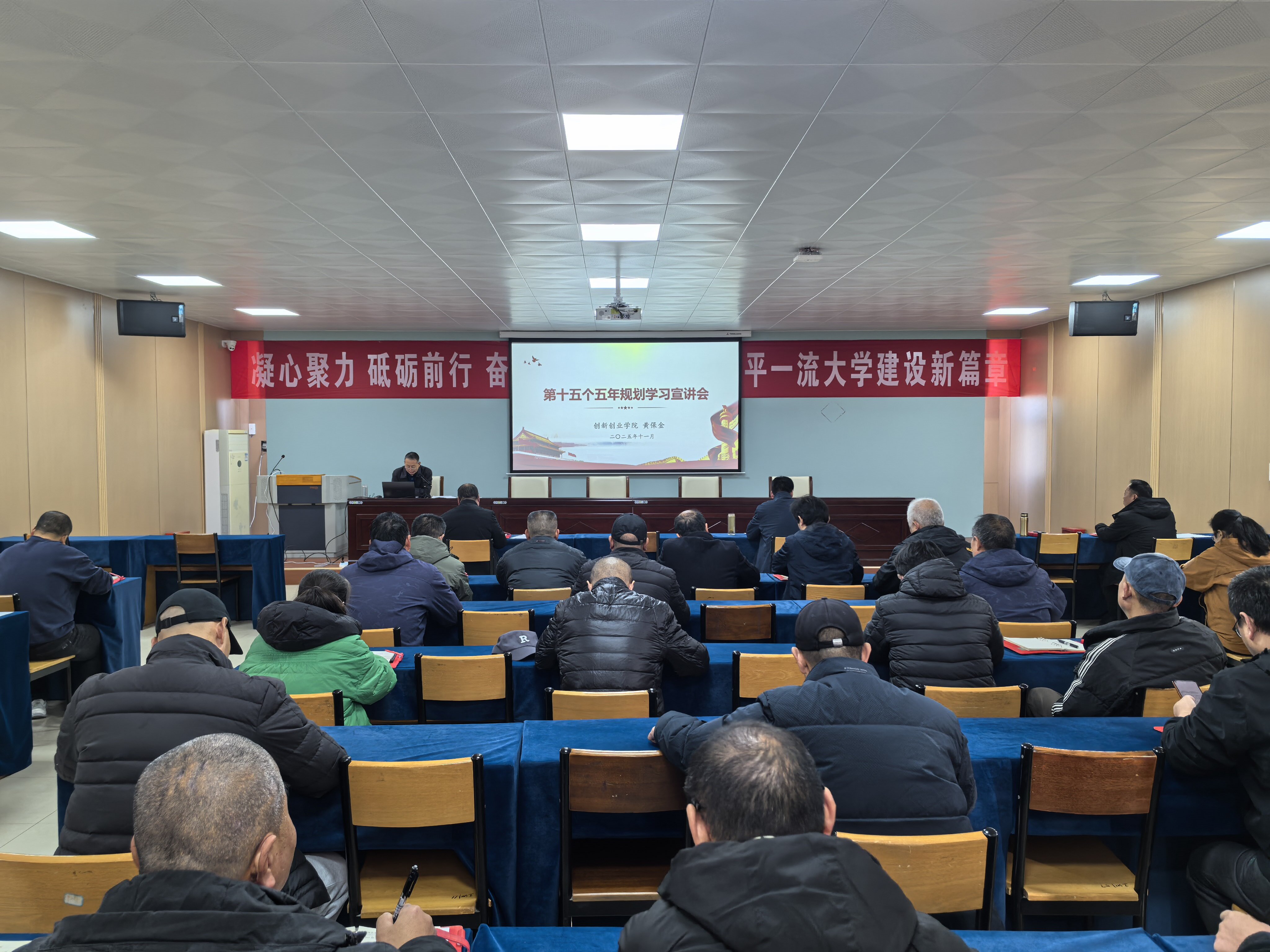 为深入学习党的二十届四中全会精神,深刻认识和把握“十五五”时期经济社会发展的指导方针、主要目标、战略任务和重大举措,11月25日下午,创新创业学院(工程训练中心)举行学习宣传贯彻“十五五”规划建议宣讲报告会。学院(中心)党总支书记黄保金作宣讲报告,全体教职工参加。
