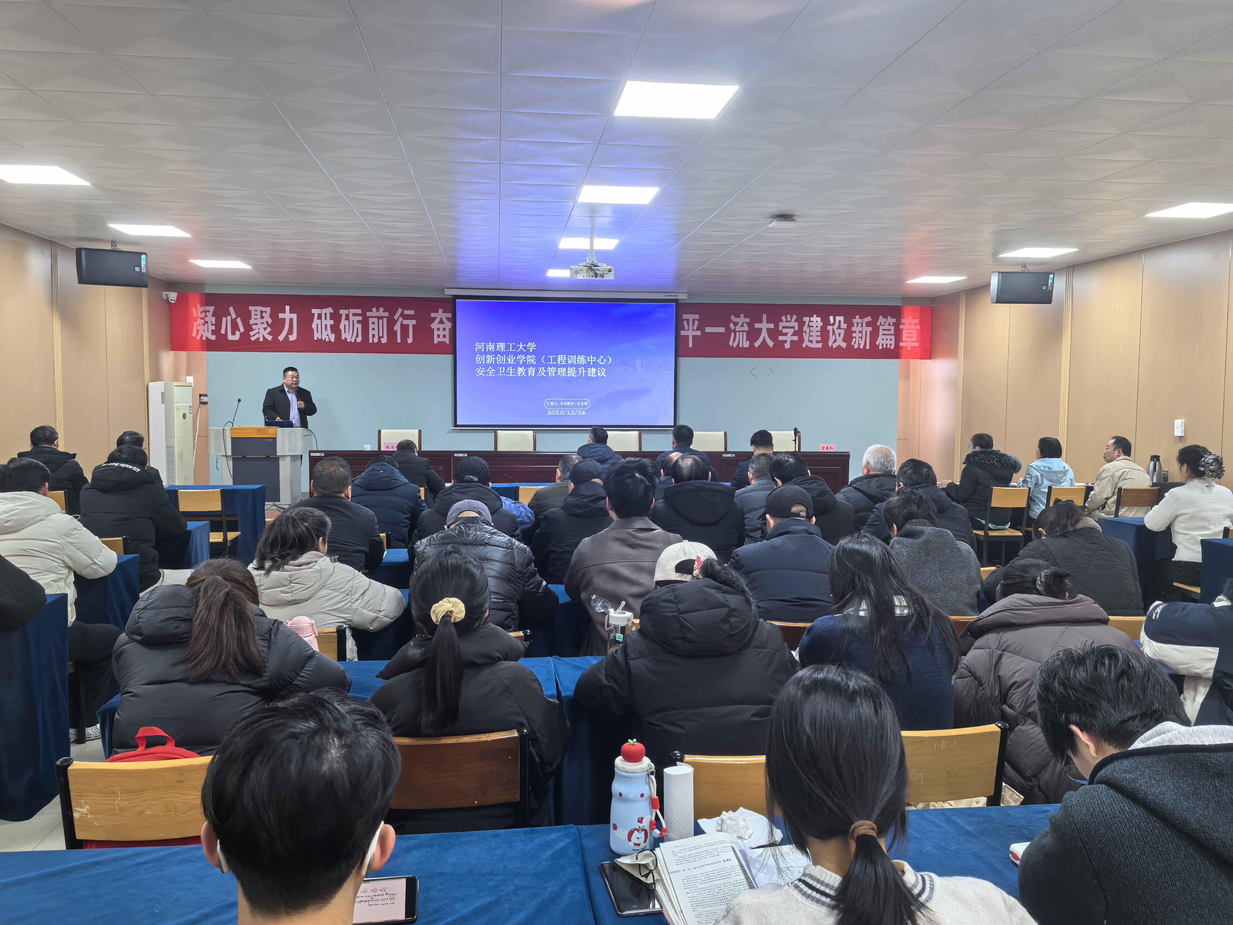 为全面筑牢工程训练与创新创业教育教学活动安全防线,持续优化育人环境质量,12月16日下午,创新创业学院(工程训练中心)特邀郑州乐治仪器设备有限公司总经理朱永烽,在学院(中心)404多媒体教室开展《安全卫生教育及管理提升建议》专题报告会。单位全体教职工及各学生创新创业团队负责人参会,会议由分管安全的副院长(副主任)吉春和主持。