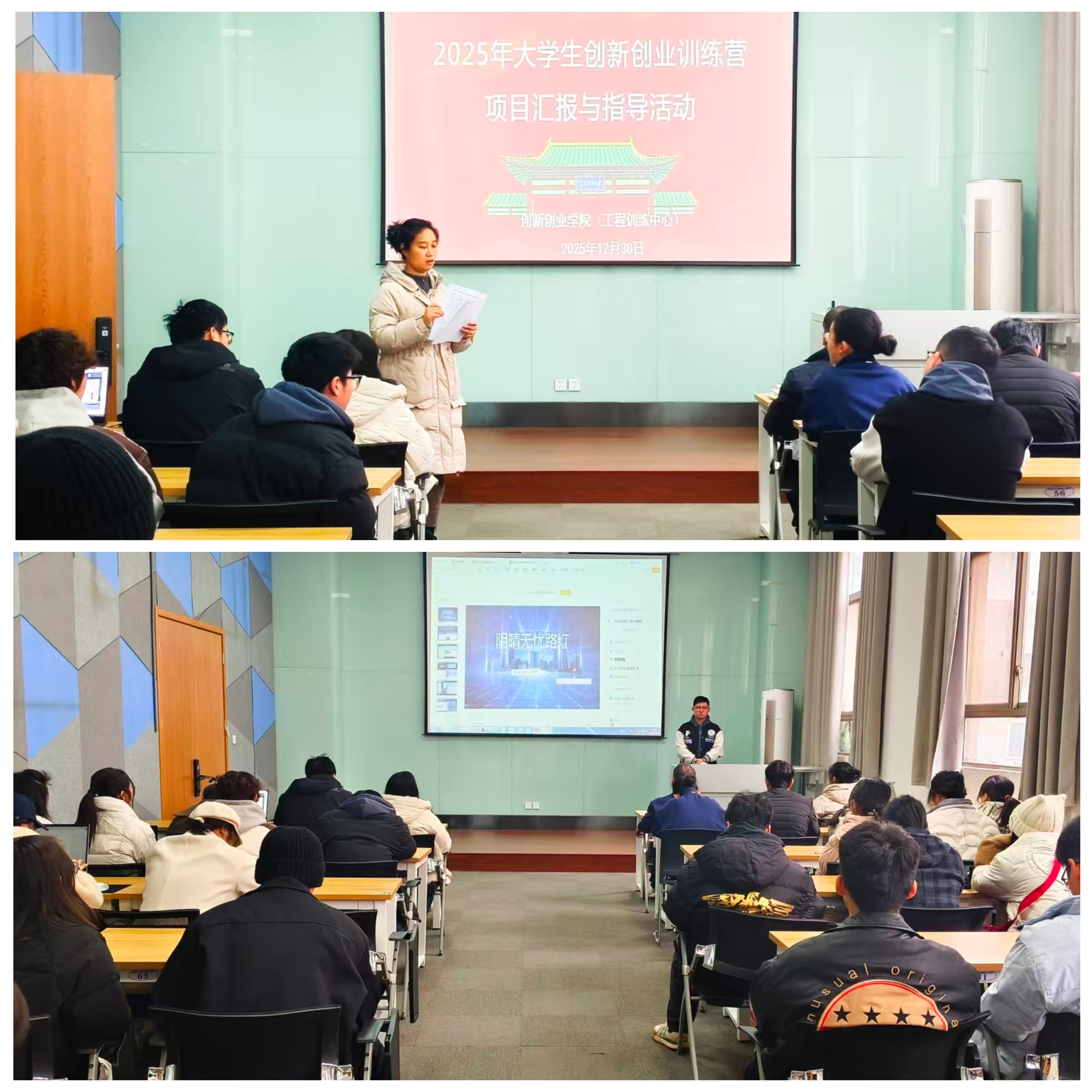 为持续深化创新创业训练营项目培育工作,推动创新创业教育与实践深度融合,助力营员们精准优化项目方案,12月30日,2025年大学生创新创业训练营项目集中汇报暨精准指导会在创新创业中心208室顺利开展。创新创业学院(工程训练中心)竞赛部主任行志刚、创新创业中心科室主任侯艇,通过“项目路演+针对性指导”的形式,为全体训练营营员项目发展把脉定向、蓄力赋能。