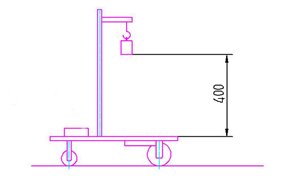 设计一种小车,驱动其行走及转向的能量是根据能量转换原理,由给定重力势能转换而得到的。该给定重力势能由竞赛时统一使用质量为1Kg的标准砝码(¢50×65 mm,碳钢制作)来获得,要求砝码的可下降高度为400±2mm。标准砝码始终由小车承载,不允许从小车上掉落。图1为小车示意图。