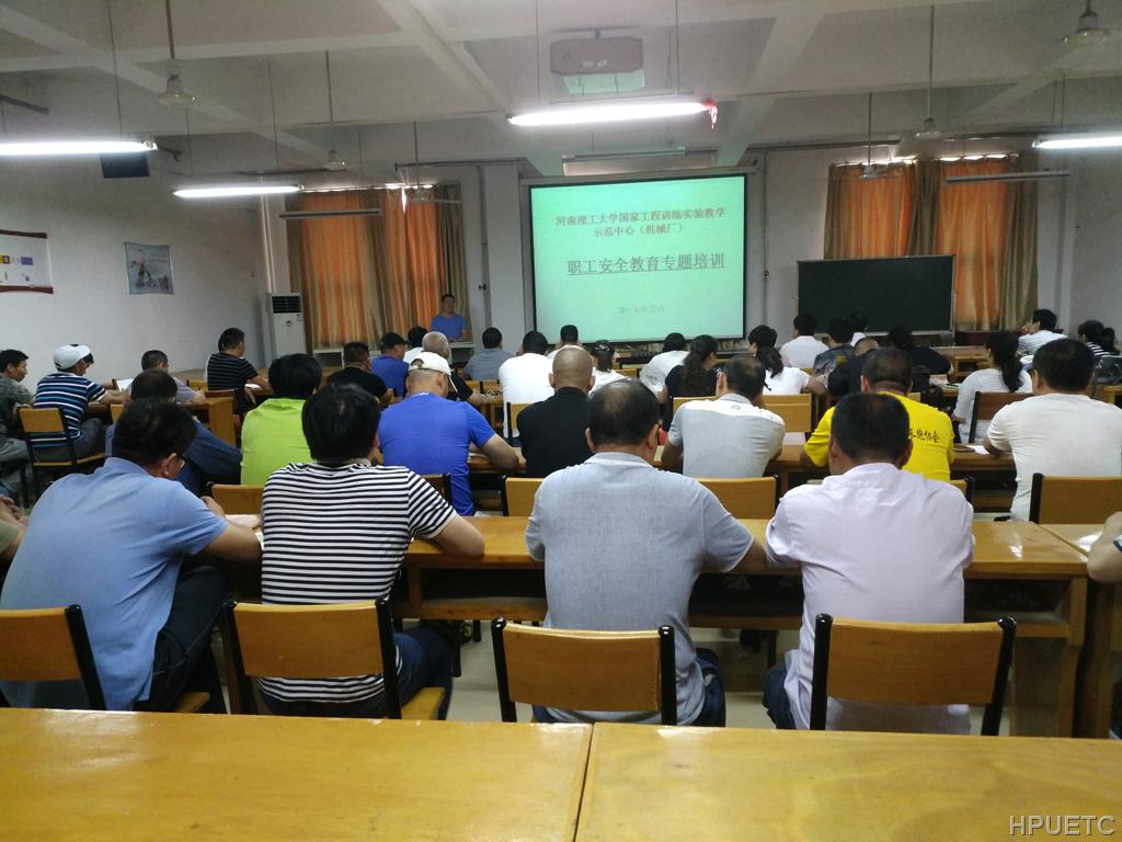 为全面贯彻落实《河南理工大学关于在全校开展“安全教育宣传月”活动的通知》(校保〔2017〕2号)文件精神,进一步增强全体教职工安全意识,提高安全防范能力,维护中心安全稳定,5月23日下午,工程训练中心在中心多媒体教室开展“职工安全教育专题培训”,中心副主任潘志勇作专题报告,全体教职工参加了培训,培训会由中心主任郝吉生主持。