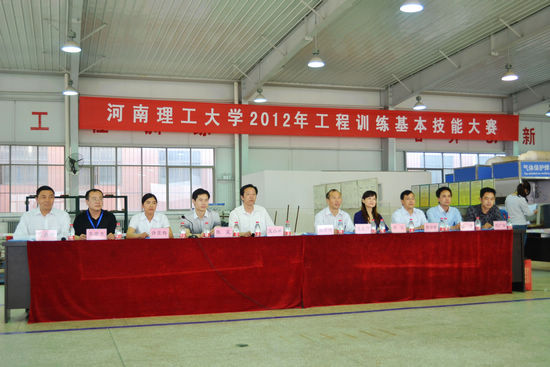 实践求知、知行合一;工程训练、创新育人。为推动实践教学改革,促进创新性人才的培养,全面提升大学生的工程实践能力。5月5日,由教务处、学生处、校团委、机械学院、材料学院、电气学院主办,工程训练中心承办的2012年工程训练基本技能大赛决赛在工程训练中心举行。出席此次大赛开幕式的领导有工程训练中心主任铁占续、教务处副处长原东方、校团委副书记陈昊、学生处副处长许荣梅、机械学院副院长王小林、电气学院副院长郑征、材料学院副院长郭学峰、电气学院副书记王瑞、教务处实践教学科科长邓广涛。大赛开幕式由工程训练中心副主任张英琦主持。
