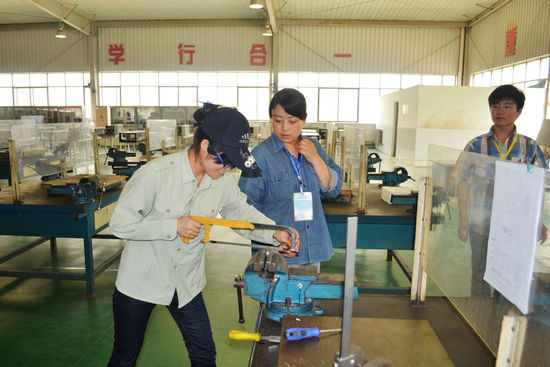 本届大赛报名选手共513人,经过一系列的角逐最终有257人成功晋级决赛。决赛项目由六部分组成,其中包括车削加工、数控技术、装配技术、焊接技术、铸造技术和电子产品组装。比赛开始前,选手们沉着冷静,有条不紊的准备赛前工作。随着一阵铃声响起,战斗的号角打响了。参赛选手立即全神贯注投入比赛当中,只见他们各个精神饱满、斗志昂扬,熟练地操作着各种设备仪器。车削加工是利用车床上工件的来改变毛坯的形状和尺寸,将其加工成符合图纸的要求。它要求参赛选手读清图纸,并对车床操作十分熟练;数控技术是通过数字控制的方法对某一工作过程实现自动控制,它要求选手的数控机操作技术十分娴熟;装配技术、焊接技术和电子产品组装讲究组装、连接、焊接的精密性;而铸造技术是将熔融的合金材料注入的铸型中经冷却后获得零件,它对于浇铸时间、材料性质的掌握等都有较高的要求。比赛现场的气氛热烈而紧张,没有摇旗呐喊,没有你争我夺,有的只是选手们专注的神情和脸颊上沁出的汗水。随着比赛的进行,一件件精心加工的产品出炉,选手们的脸上终于浮现出胜利的微笑。“我参加了电子产品组装的比赛,”走出赛场的小刘神色略显疲惫,“我们所做的就是按照复杂的图纸,把电子元件焊接在一起,虽然看起来像一团麻,但是真正做起来却是很有吸引力的。那复杂的图纸在我们眼里可是最美的图画啊!”从他远去的笑声中,我们听到的不是苦和累,而是自信和快乐。比赛结果将于近期公布。