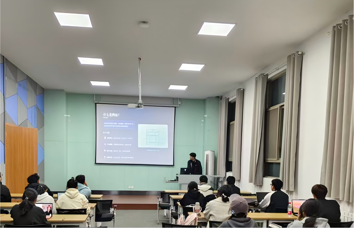 培训中,赵博海围绕网站搭建入门、基础理论、前期规划等高频需求,系统讲解了网站核心概念、技术栈及前期准备技巧,通过案例演示、步骤拆解、现场互动等方式,让参训学生快速掌握网站搭建的基础理论与核心要点。张宸宁聚焦网站搭建落地与实操技能,通过理论回顾、案例分析与实操训练相结合的方式,系统讲解网站页面搭建、元素布局、样式调试及无代码工具使用,帮助同学们掌握实用建站技巧,提升动手操作与问题解决能力。